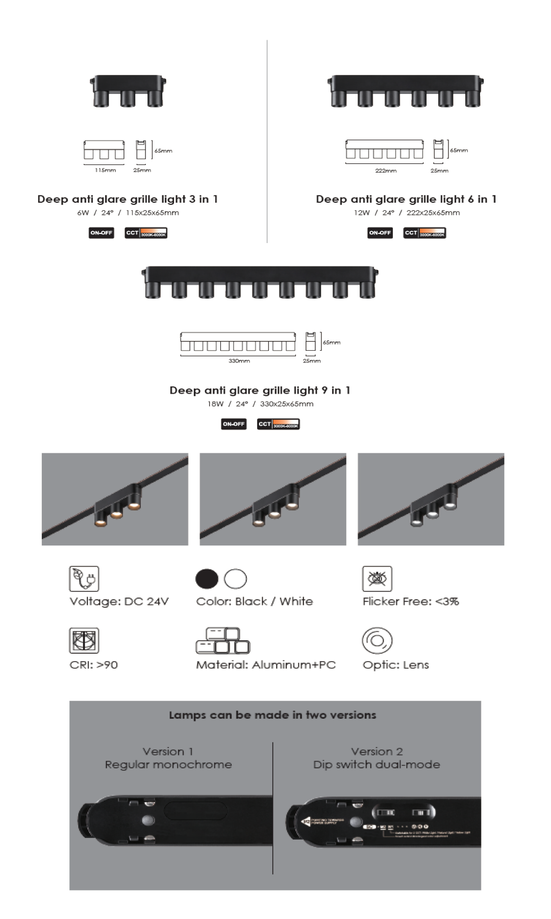 Dual Versions: Choose between standard On-Off or Dip Switch Dual-Mode (toggle between 3000K–6000K).