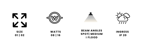 Grid gyro design downlight collection in clean finishes offers multiple options to chose from wattages between 8W – 12W in all standard symmetric beam options and as made available across 2 varied size options to adopt to site requirements within the standard color spectrum.